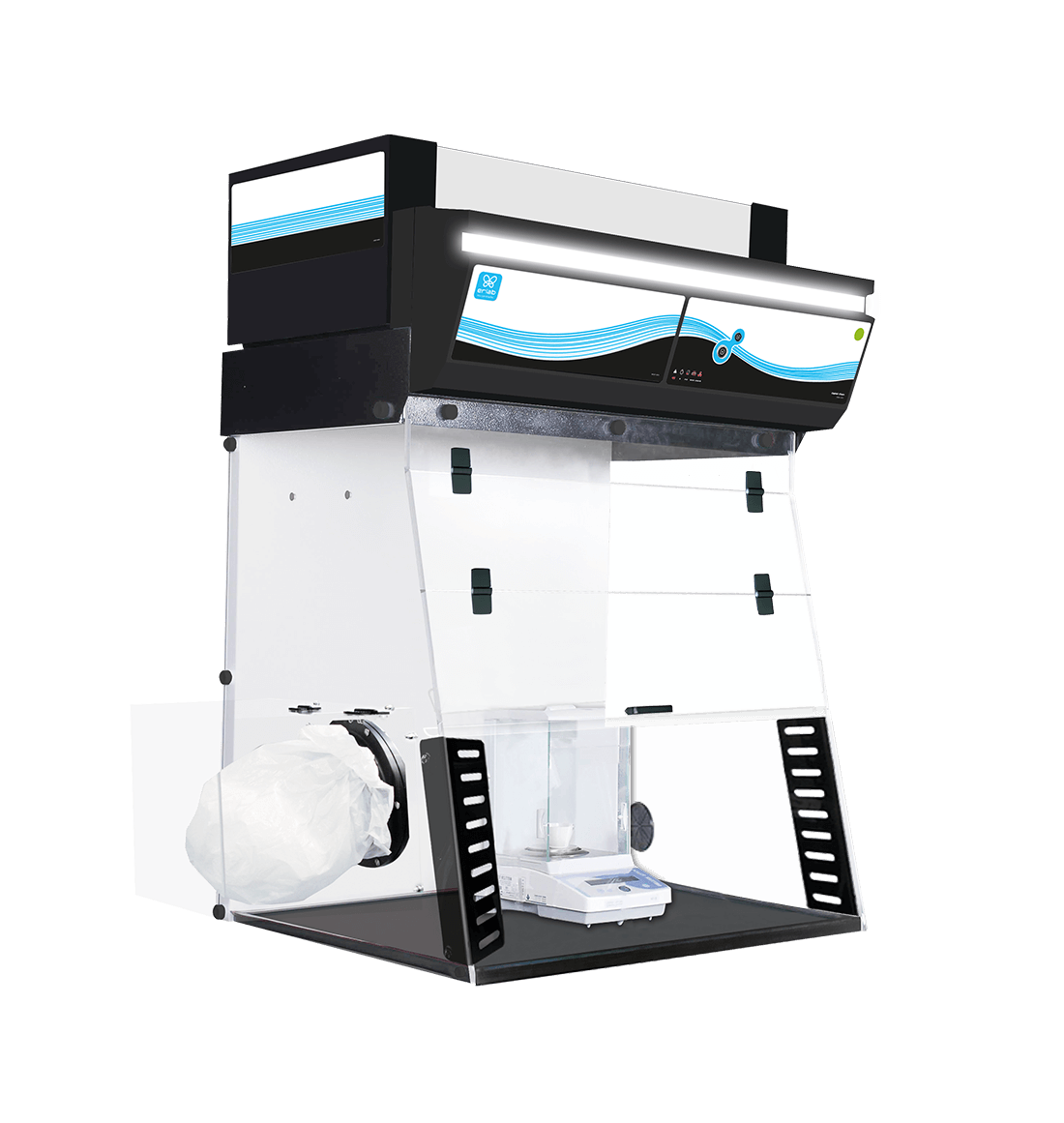 It eliminates energy consumption associated with renewing the laboratory’s air (air supply/extraction, filtration, dehumidification, air conditioning). With an energy consumption between 70 W and 191 W, operational costs are extremely low.